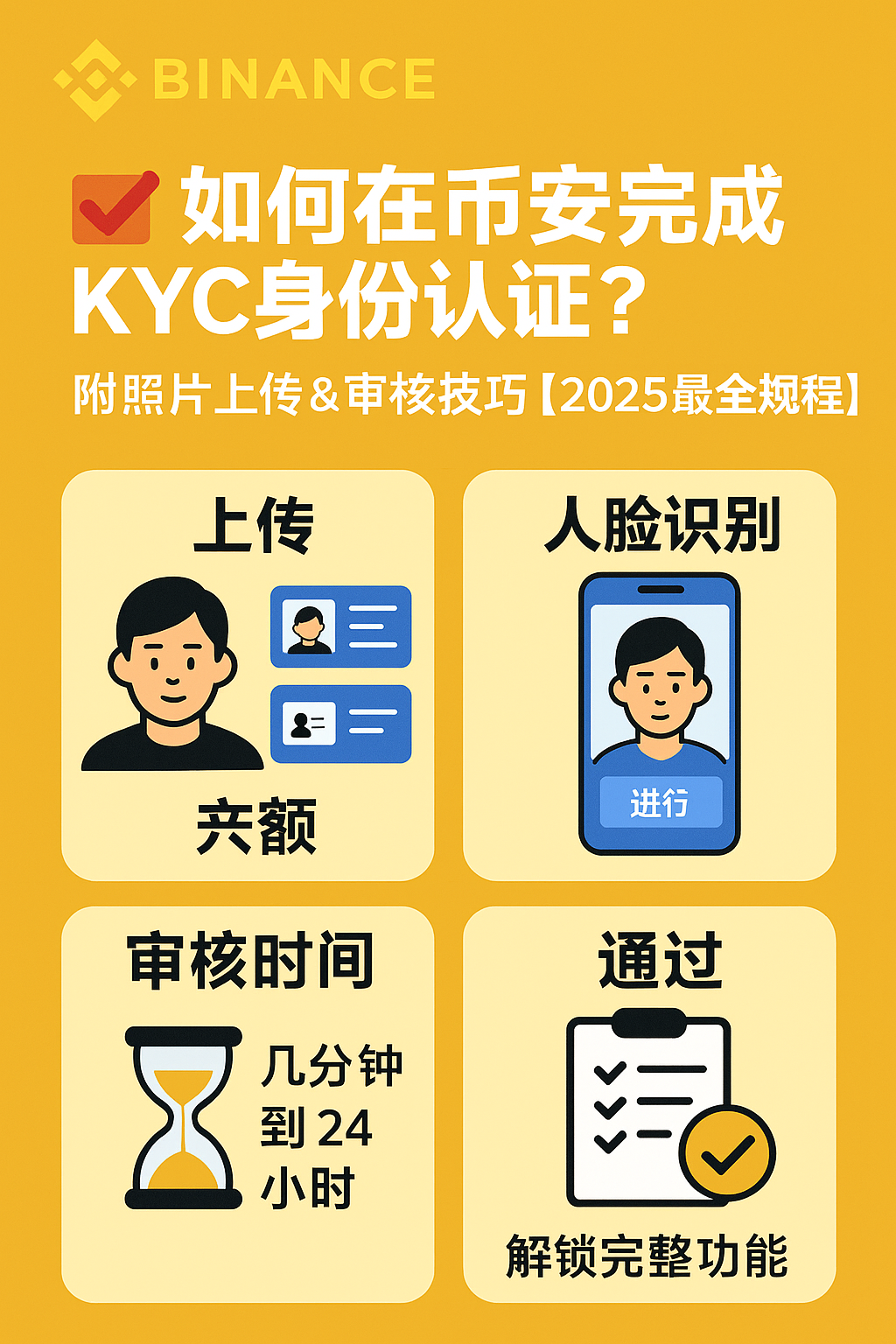 是币安为了遵守全球金融监管规定,验证你身份的流程。完成KYC后,你才能: